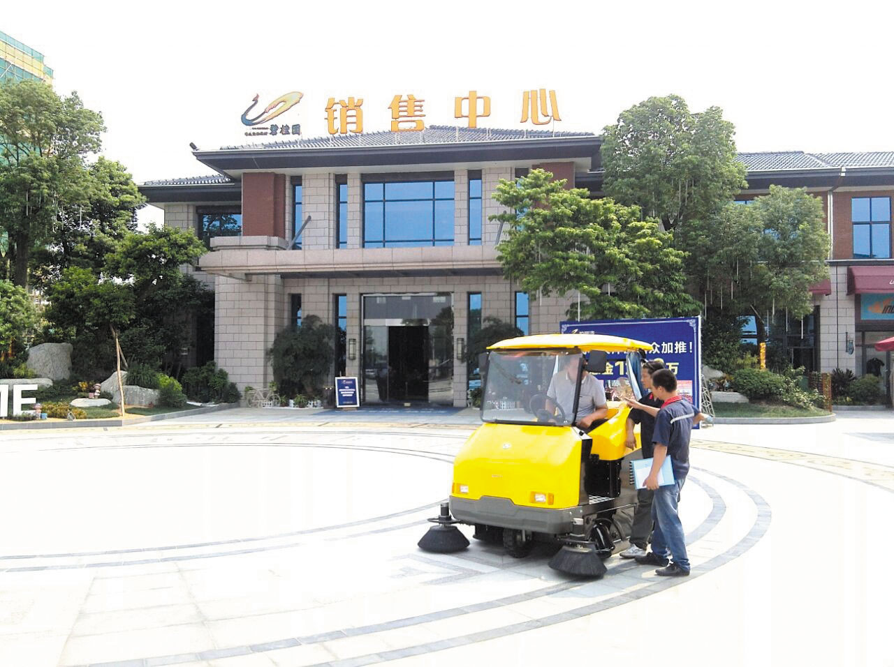 格美电动扫地车S9,清扫宽度1.9米,针对坡度大、多减速带、垃圾种类繁多的物业小区环境而设计,能清扫包括树叶、 矿泉水瓶、易拉罐、沙石等一系列垃圾,垃圾箱容积达180L,工作效率高。适合于大型物业小区、景区、城市道路、6-9万平方米的清洁。